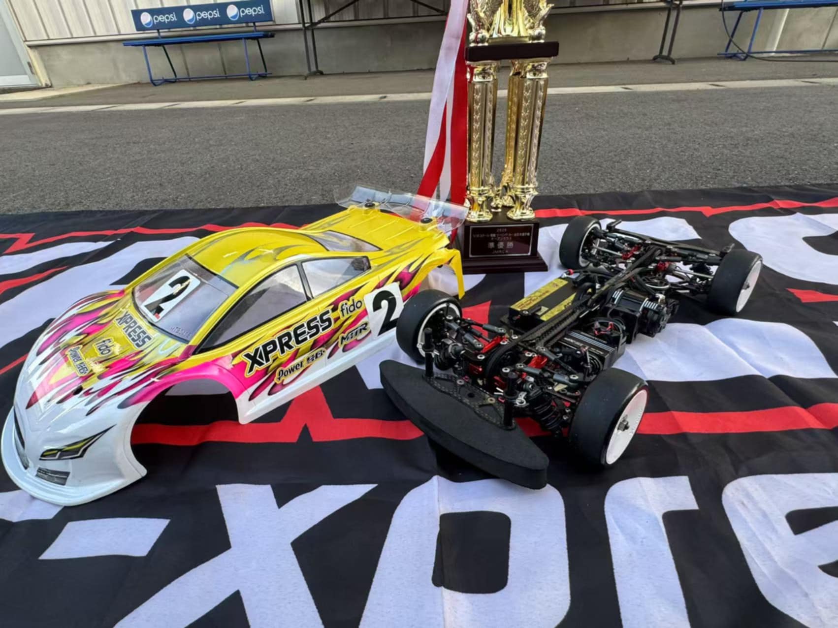 Yoshi's car with his trophy, sporting the prototype parts from TITC.