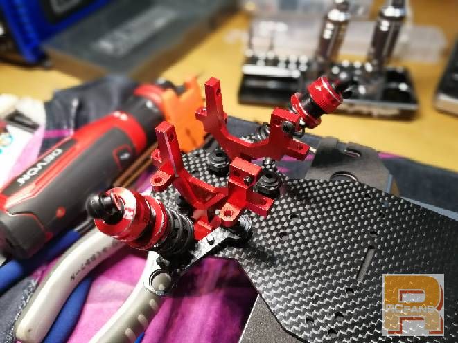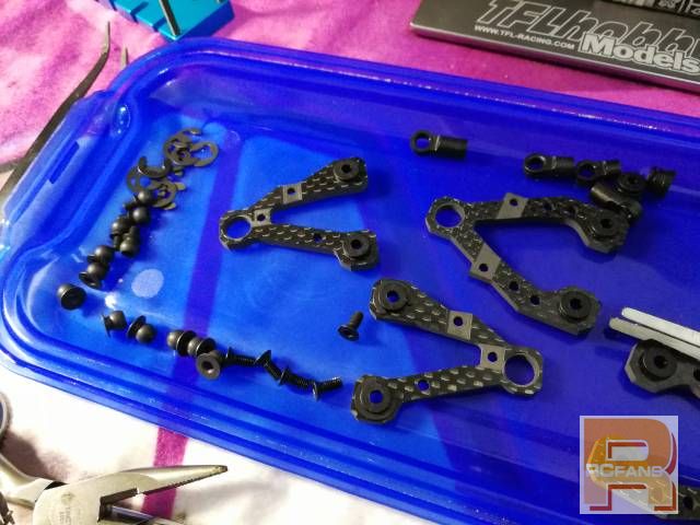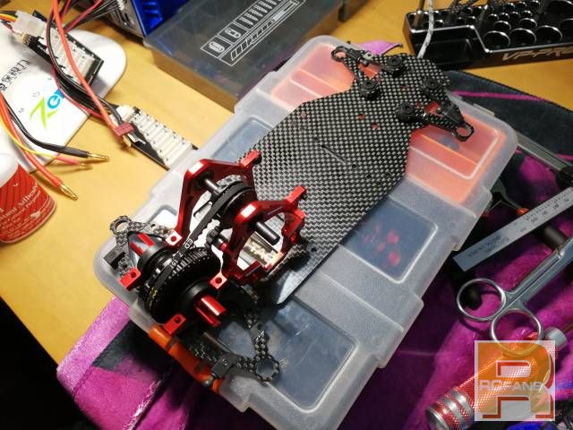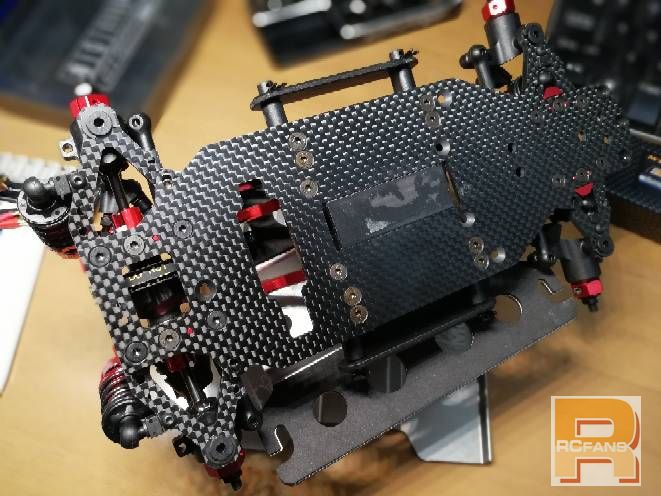 這個平跑車是採用了1/10電房的電子設備,車輪,而車架縮小的車架,比M車再小一個個頭,好處是可以在非常小的場地練習具備專業可調性的車,而xpress這個公司的產品水平真的算是頂級水平,膠件的質量,精度一流,而這個車架設計的巧妙性,也會令人在裝車過程中稱讚不已,當然,因為佈局非常緊湊,裝車難度較10車大不少,採用三角上臂,調車難度增加不少,因為三角形的兩個臂調其中一個,內傾角和toe角都會變化。關鍵還是可以在小場地練習了。